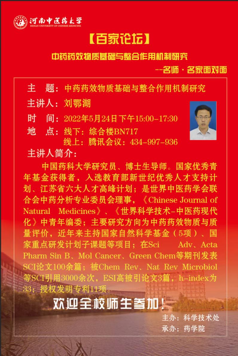 中药药效物质基础与整合作用机制研究(中国药科大学刘鄂湖研究员)