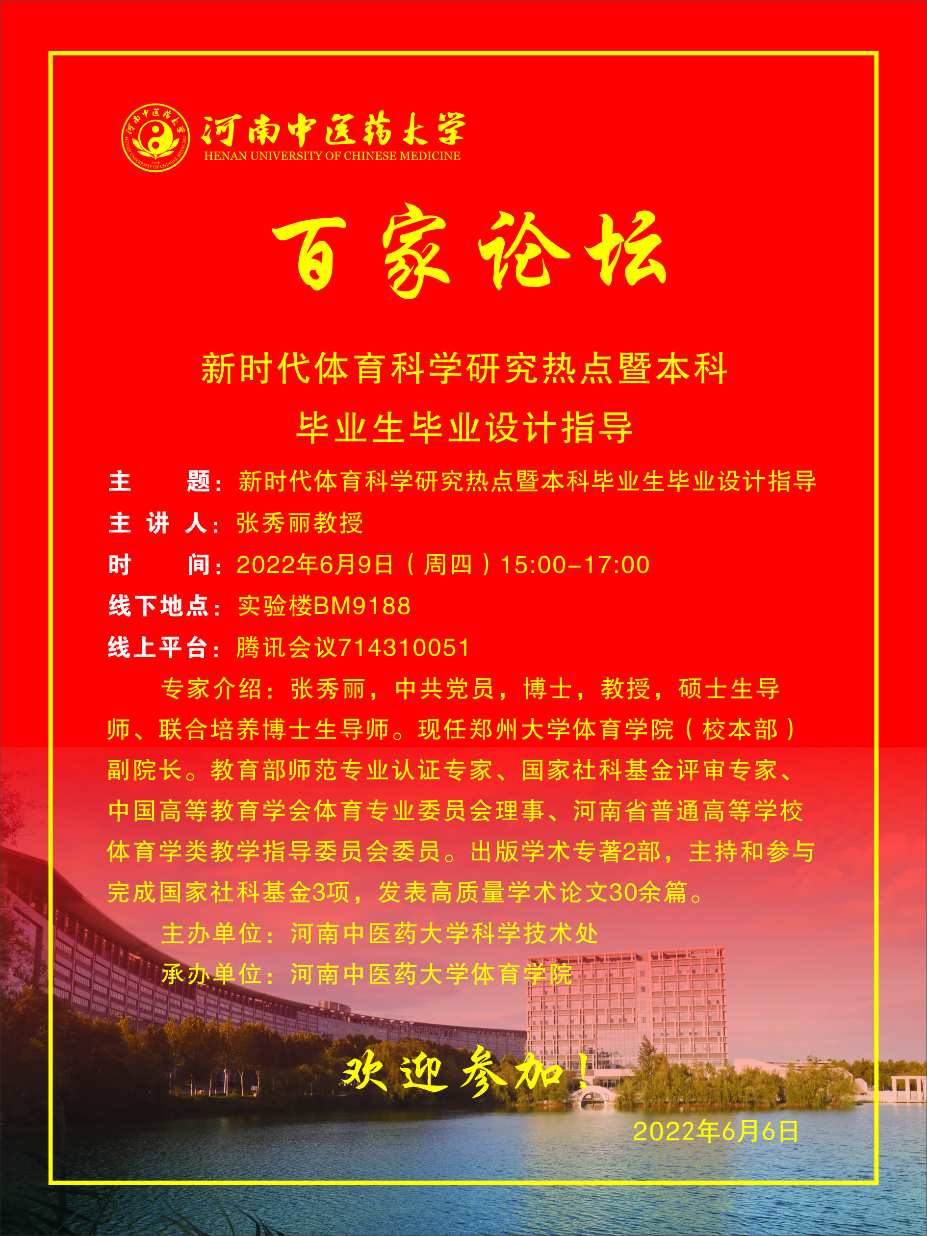 新时代体育科学研究热点暨本科毕业生毕业设计指导(郑州大学张秀丽教授)