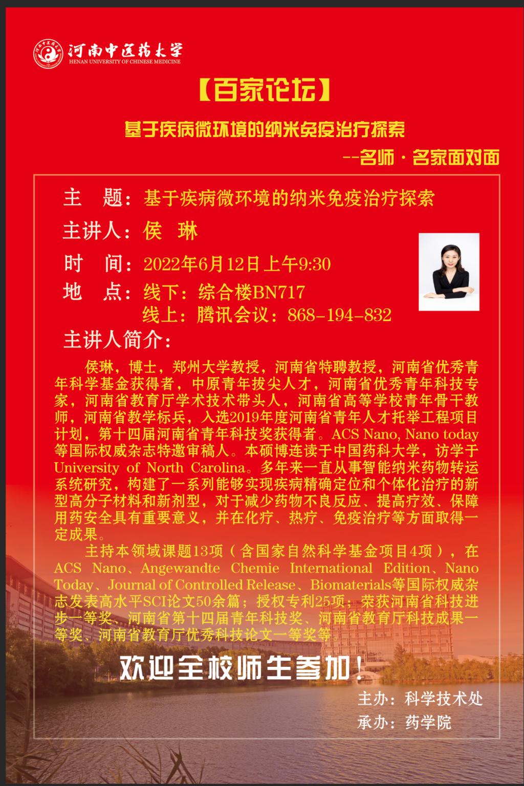 基于疾病微环境的纳米免疫治疗探索(郑州大学侯琳教授)