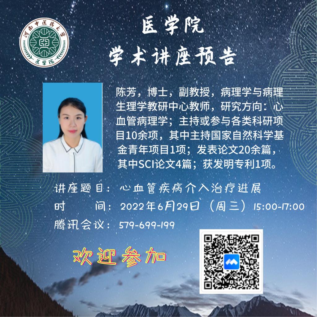 直播预告 |医学院系列学术讲座(冯书营、陈芳、罗天霞)