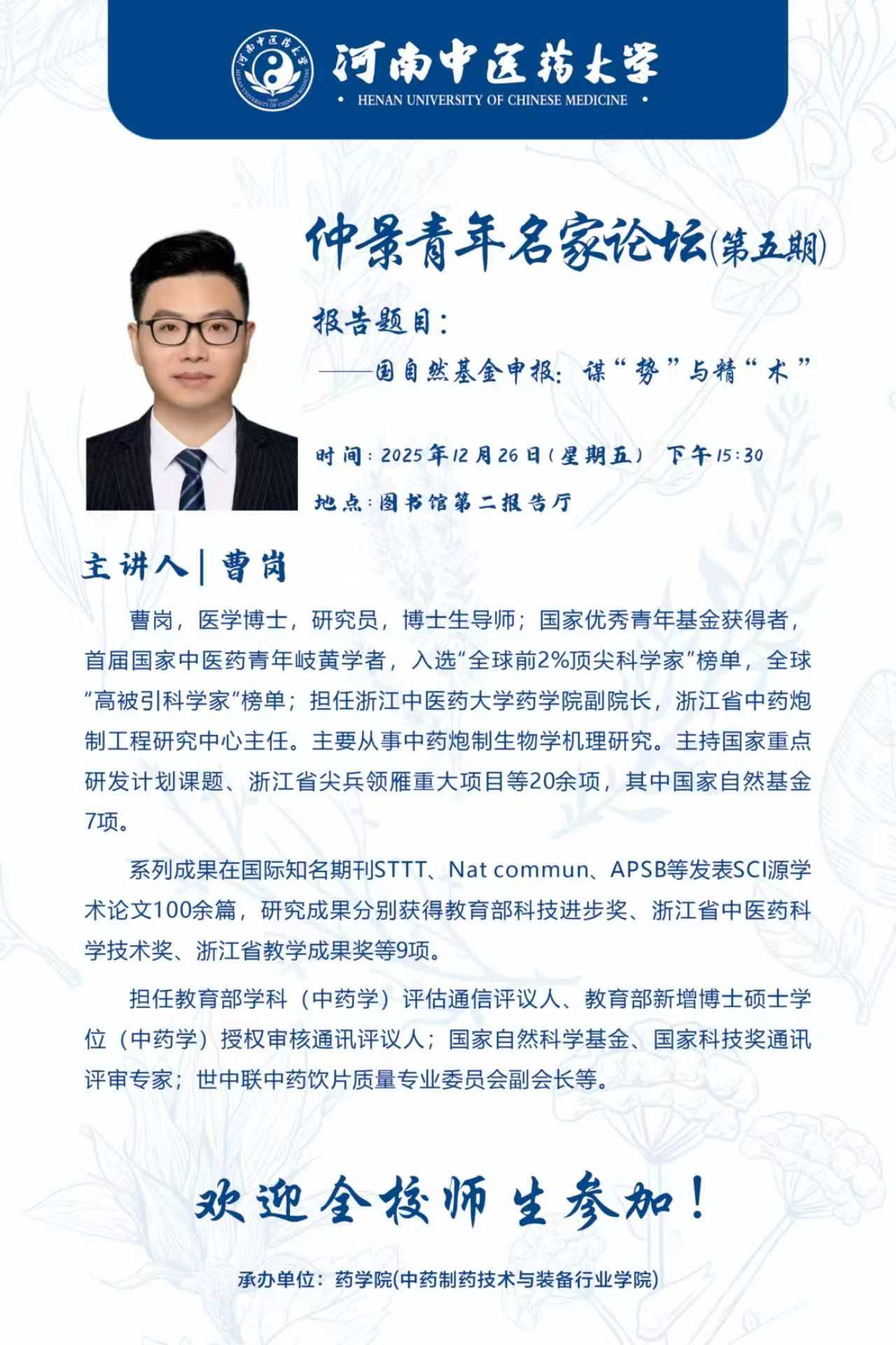 学术活动预告:国自然基金申报—谋“势”与精“术”